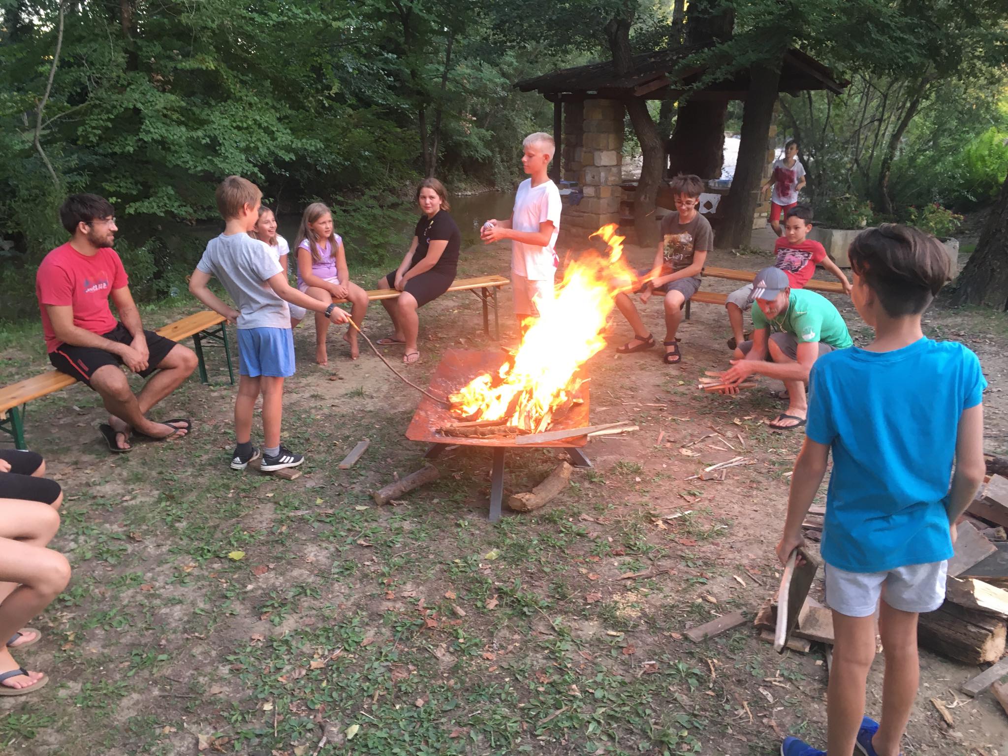 Po večerji, ki so jo otroci skuhali sami, tako kot so sami spekli palačinke in skuhali marmelado za namaz, je zagorel taborniški ogenj.