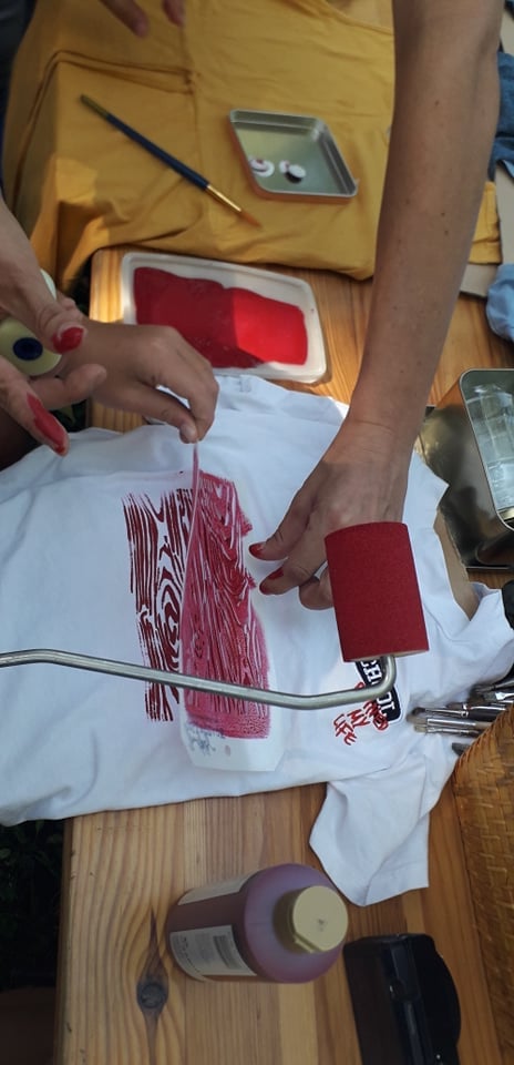 Spoznavanje s ponovno uporabo so začeli s predelavo in potiski na majice. Za prenovo majic, ki bi sicer končale kot odpadek, so uporabili barve, šablone, štampiljke, liste rastlin in čopič. S škarjami so jih še nekoliko predelali: skrajšali, obrezali ali narezali resice.